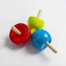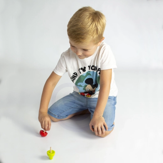 Barvne palčke služijo za klasični mikado, vrtavka uri koordinacijo, dve jojoti pa spodbujata spretnost in motoriko – idealno za male in velike tekmovalce.