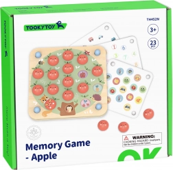 Odkrijte privlačno spominsko igro, ki bo navdušila otroke, odrasle pa zanesljivo potegnila v skupno zabavo. Lesena plošča s 16 jabolki skriva simpatične slike živalic in predmetov. Naloga je zapomniti si položaj in najti dve enaki. Igra podpira fino motoriko, vizualno zaznavanje in osredotočenost.