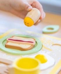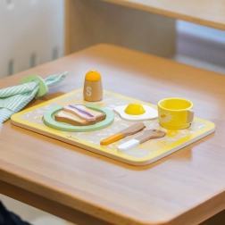 Dovolite svojim otrokom, da se potopijo v toplo in ustvarjalno zabavo z lesenim zajtrkovalnim setom Classic World. Ta set ne ponuja le veliko možnosti za igro, temveč pomaga otrokom razvijati tudi socialne spretnosti in dobre navade pri mizi. Idealen je za otroke od 3 let in vsebuje krožnik, pribor, skodelico, sol, poper, jajce, popečene kruhke, rezino slanine, prtiček in pladenj za serviranje.