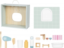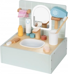Lesena kopalnica Tooky Toy je idealna za otroke od 3 let naprej. Vsebuje različne kopalniške dodatke, zasnovane tako, da otroke spodbujajo k učenju pomembnih higienskih navad. Set vključuje: