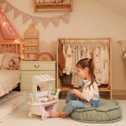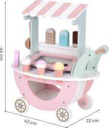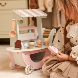 Leseni voziček za sladoled Woopie Green ni samo lep kos v nežnih pastelnih barvah, ampak tudi poln možnosti za ustvarjalno igro. Vaš otrok lahko postane prodajalec, kupec ali celo 7sladoledni mojster1 in ustvarja lastne sladoledne skodelice po svoji domišljiji!