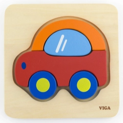 Pospravite vse dele na leseno podlago in ustvarite čudovito sliko avtomobila. Set vsebuje 4 dele, zasnovane za zbiranje celotne serije sestavljank. Igrača nima ostrih robov in je izdelana iz najkakovostnejših materialov, varnih za otroke in okolje. Prav tako je pobarvana z nestrupenimi barvami.