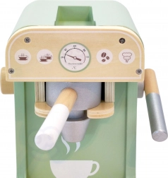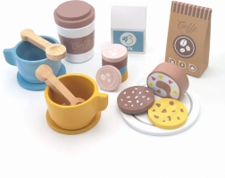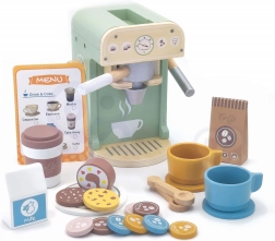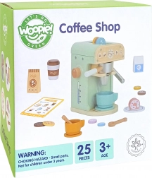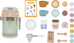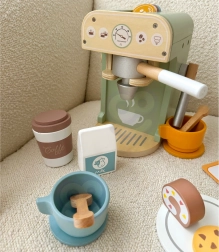 Set podjetja Woopie Green je idealna izbira za otroke, ki sanjajo o tem, da postanejo mali baristi. Z 25 elementi, vključno s kavnim avtomatom, skodelicami, kapsulami in mlekom, lahko otroci posnemajo odrasle in razvijajo svoje spretnosti med igro "kavarna". Ta set je izdelan iz naravnega lesa in varnih barv za otroke, kar zagotavlja realističen videz in varno igro.