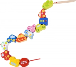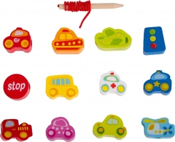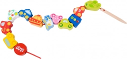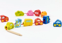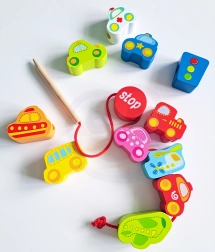 Odkrijte pametno igračo, ki združuje učenje in zabavo. Lesene perlice v obliki avtomobilov, avtobusa, letala ter prometnih znakov se zlahka nizajo na vrvico z lesenim zaključkom. Otroci med igro urijo fino motoriko, natančnost gibov ter prepoznavanje barv in oblik.