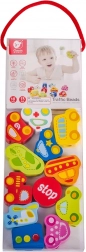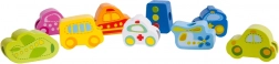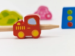 Barvita vozila in prometni znaki približajo otrokom svet cest. Pri sestavljanju zaporedja perlic vadijo barve, oblike in osnovna pravila prometa.