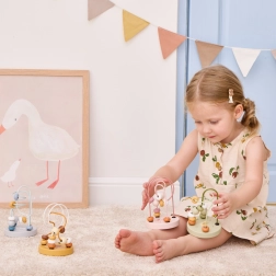 Otroci pomikajo kroglice po zankah in tako naravno urijo prijem, natančnost ter tekočnost gibov že od 12 mesecev.