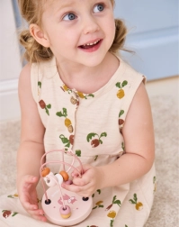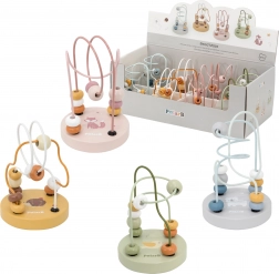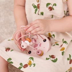 Otroški kroglicni labirint s kompaktno leseno osnovo in gladkimi kovinskimi zankami ponuja zabavno premikanje 10 kroglic v dveh oblikah. Ta senzorična aktivnost podpira natančnost gibov, spretnost prstov in prve poskuse reševanja problemov. Stilski pastelni odtenki in prisrčne ilustracije živalic se podajo v vsak otroški sobico.