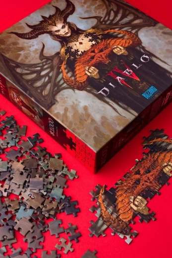 Uživajte v kakovostni sestavljanki s temno estetiko igre DIABLO IV. Motiv Lilith, 1000 natančno izrezanih koščkov in končna velikost približno 48 × 68 cm bodo razveselili tako oboževalce kot zbiratelje.