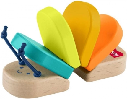 Lesena klepetajoča gosenica Fisher‑Price je čutna ropotuljica, zasnovana za varno in veselo raziskovanje. Barvni členki se prijetno premikajo in klepetajo, s čimer spodbujajo radovednost in učijo otroke povezave med gibanjem in zvokom.