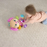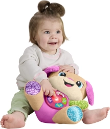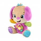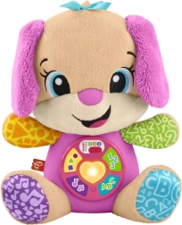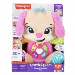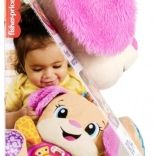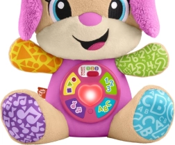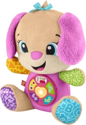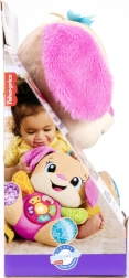 FISHER-PRICE Laugh & Learn Smart Stages Sestrica je mehak plišasti prijatelj in pametna izobraževalna igrača v enem. Otroci od 6 do 36 mesecev odkrivajo prve veščine prek pesmic, lučk in dotikalnih elementov. S pritiskom na gumbe na trebuščku se zasveti srček in zaigrajo pesmice, številke ali barve – učenje je tako naravno in polno veselja.
