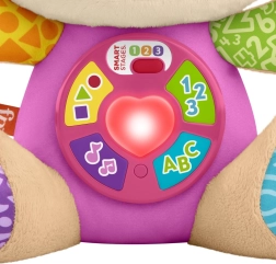 Prisrčna interaktivna plišasta igrača za najmlajše, ki uči prve besede, barve, oblike, črke in štetje. Z več kot 80 melodijami, zvoki in frazami, 5 aktivnimi gumbi na trebuščku in svetlečim srčkom prinaša zabavno učenje vsak dan. Smart Stages – 3 stopnje učenja rastejo z otrokom, večjezični način pa vključuje tudi slovenščino.