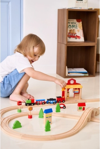 Postaja je idealna za otroške prizore – od prodaje vozovnic do prihodov in odhodov vlakov. Dimenzije stavbe so zasnovane tako, da se zlahka prilegajo večini igralnih površin ter so kompatibilne z običajnimi lesenimi tiri. Igra spodbuja fino motoriko, koordinacijo oko–roka in socialne veščine.