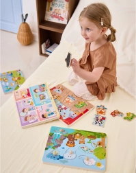 Barvite sestavljanke predstavljajo raznolike naravne prizore in zvoke, ki otroke takoj pritegnejo.