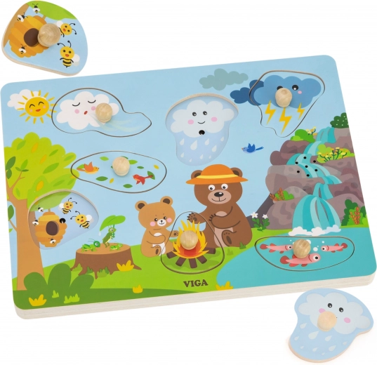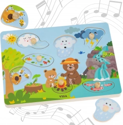 Potopite svojega otroka v čarobni svet narave z lesenimi sestavljankami Zvoki narave od VIGA. Igrača je zasnovana tako, da na naraven način podpira razvoj otrokove domišljije in radovednosti. Potrebno je le pravilno postaviti koščke na desko, da se sprožijo realistični zvoki narave, ki otroku nudijo občutek pravega gozdnega avanturizma. Ta igrača je idealna za otroke, ki želijo raziskovati svet skozi interaktivno igro.