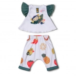 Prisrčen komplet oblačil za punčke BABY born in medvedke Teddy v velikosti 43 cm prinaša igriv dizajn z opičko, račko Berto in sadjem. V kompletu so bela majica z zelenimi nabranimi rokavi ter potiskane hlače za stajliš videz in preprosto preoblačenje. Kakovostna izdelava, preprosto oblačenje in dolgotrajna zabava pri vsakodnevni igri.