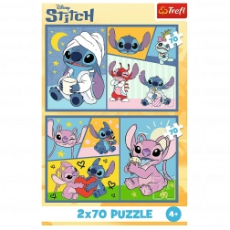Komplet sestavljank 2x70 kosov ponuja dve edinstveni sestavljanki v enem paketu, kar zagotavlja dvojno zabavo. Z zahvaljujoč temu kompletu lahko otroci raziskujejo svet Lilo in Stič ter ustvarjajo podobe junakov svoje priljubljene risanke.