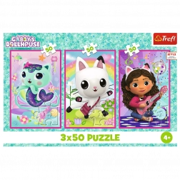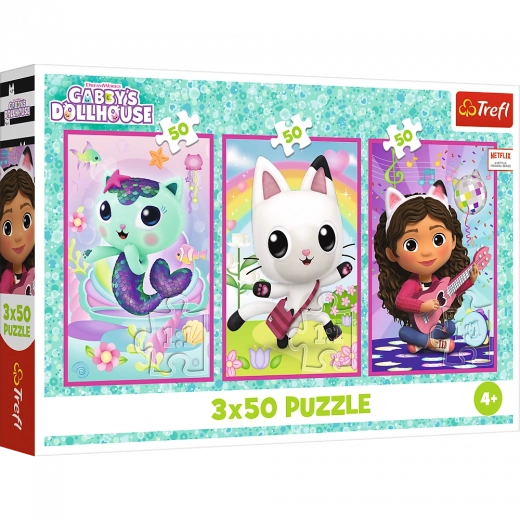 Puzzle 3x50 - Spoznajte Gabby in njene mucke je zabavna zbirka, navdihnjena s serijo Gabbys Dollhouse. Sestavljanje ni le zabavno, temveč tudi način za razvoj fine motorike in domišljije.