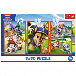 Sestavljanke 3x80 znamke Trefl predstavljajo tri zabavne sestavljanke z 80 koščki v enem pakiranju, idealne za razvijanje otroške ustvarjalnosti in sodelovanja pri sestavljanju.