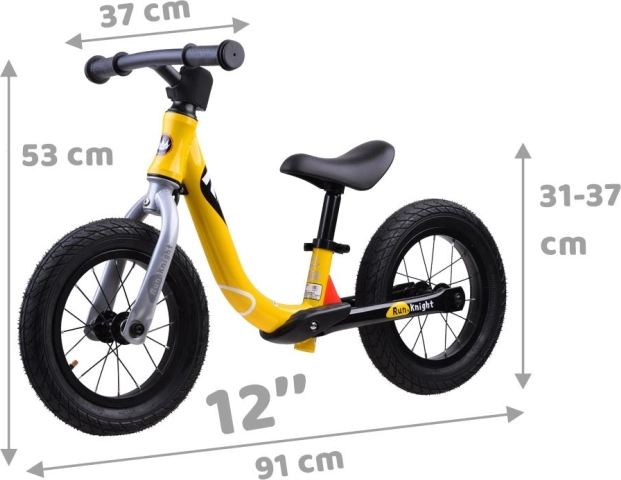 RoyalBaby Run Little Knight je zanesljiv poganjalec za prve vožnje brez pedal. Zaradi lahke aluminijaste konstrukcije in nizkega vstopa se otroci nanj zlahka usedejo in hitro pridobijo samozavest pri vožnji. Napihljive 12" pnevmatike z dezenom zagotavljajo udobje in dober oprijem na različnih podlagah.