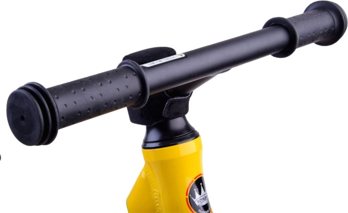 Varnost in udobje povečujejo omejevalnik zasuka krmila, ki preprečuje preostre zavoje, ergonomsko oblikovano krmilo z nedrsečimi ročaji ter hitro sproščanje za nastavitev višine sedeža (pribl. 31–37 cm), tako da poganjalec raste skupaj z otrokom. Zadnje stopalke omogočajo pri spustih udobno nasloniti noge in vaditi ravnotežje.