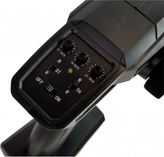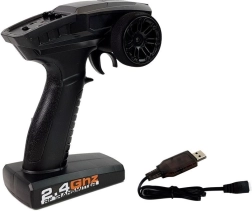 Ergonomski pištolski upravljalnik z usmerjanjem koles in plina na frekvenci 2,4 GHz zagotavlja zanesljiv doseg in vožnjo brez medsebojnih motenj.