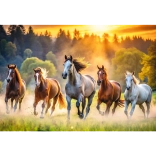 Motiv galopirajočih konj na zeleni jasi bo navdušil ljubitelje narave in živali ter postal čudovit poudarek vašega interierja.