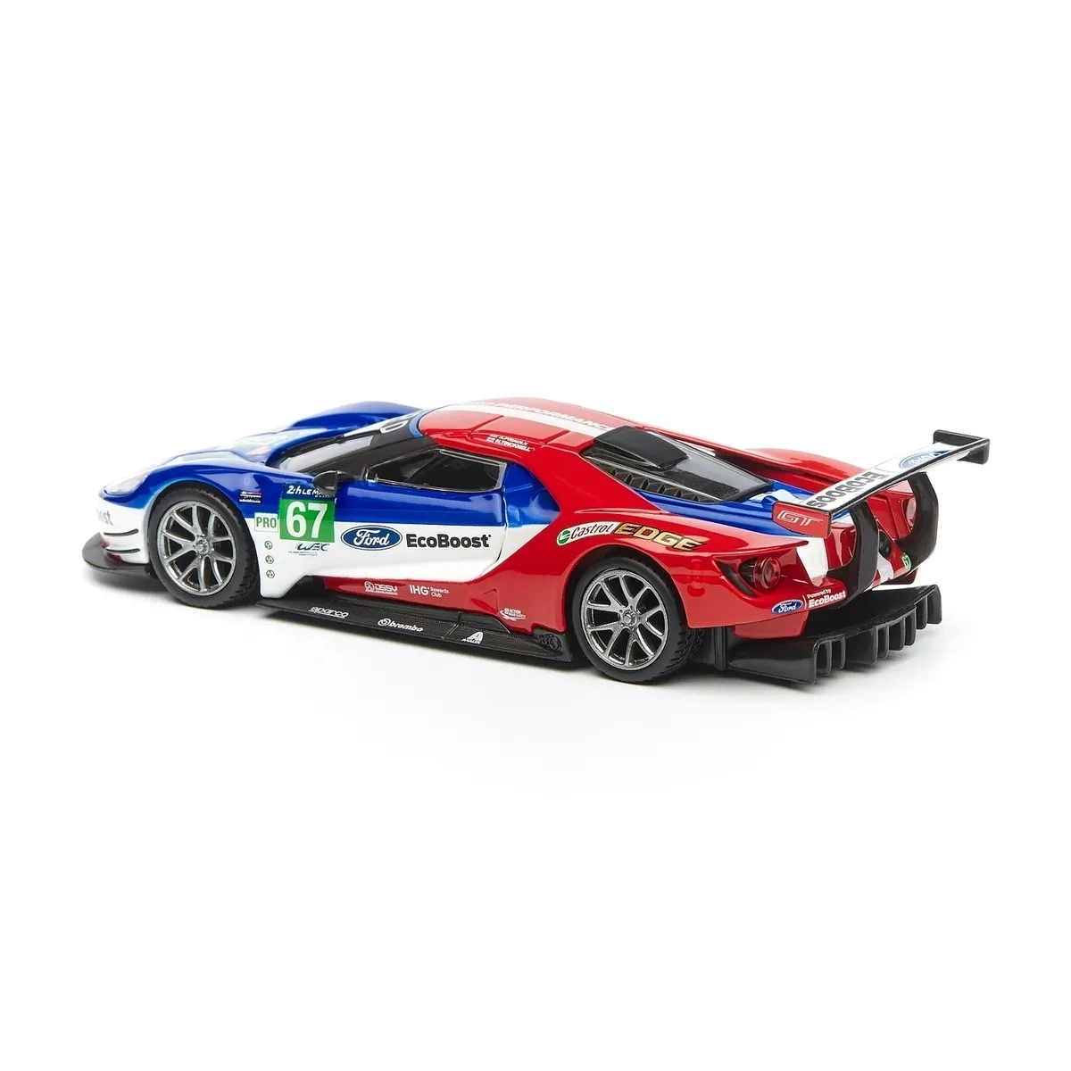 Ta natančen kovinski model dirkalnega vozila FORD GT v ikonični barvni shemi EcoBoost Le Mans #67 ponuja odlične podrobnosti karoserije, verodostojne proporce in kakovosten potisk z logotipi sponzorjev. Zaradi robustne izdelave in prosto vrtečih se koles je idealen za razstavne police in lahkotno igro.