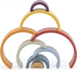 Lesena mavrica PolarB je oblikovalska sestavljanka, ki raste skupaj z otrokom. Sedem barvnih lokov in notranji košček z logotipom omogočajo gradnjo mavrice, mostov, ograj, stez za avtomobilčke ali balansnih stolpov. Igra naravno razvija domišljijo, potrpežljivost in prostorsko predstavo.