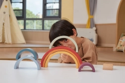 Varnostna izvedba brez ostrih robov ter vzdržljiv, skrbno brušen les zagotavljata prijeten oprijem in dolgo življenjsko dobo. Netoksične barve so prijazne do otrok in narave. Mavrica je čudovito orodje montessori pristopa in hkrati stilna dekoracija otroške sobe.