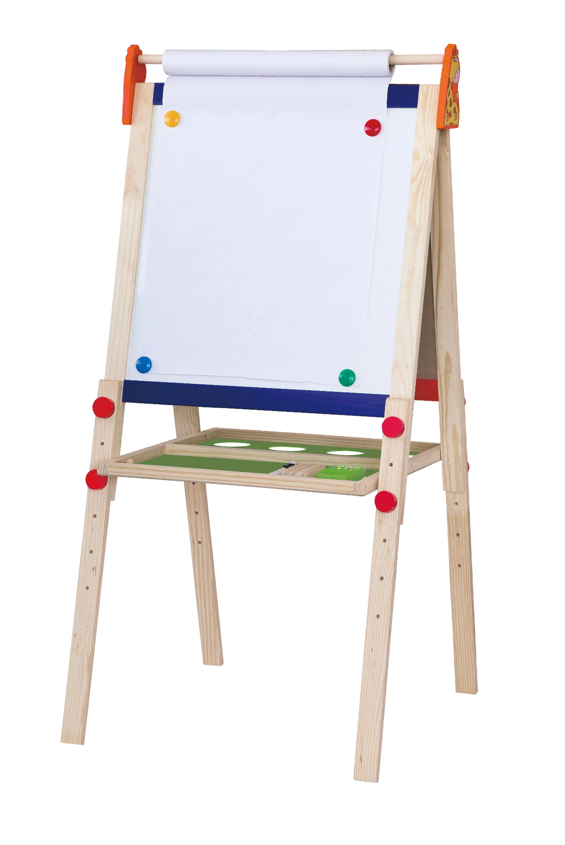Priložena je tudi rola papirja na vrhu ter magneti za pritrditev listov, zato lahko otroci zlahka prehajajo med risanjem na papir, pisanjem s flomastrom ali risanjem s kredo. Vse potrebno najdete v paketu – le odprite in ustvarjajte.