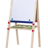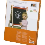 Ta kakovostna lesena risalna tabla Viga ponuja dve veliki površini za neskončno zabavo in učenje – črno tablo za risanje s kredo in belo magnetno tablo za piši-briši flomaster. Stabilna konstrukcija zagotavlja varno uporabo doma in v otroški sobi.