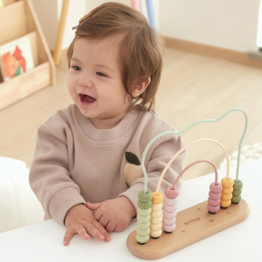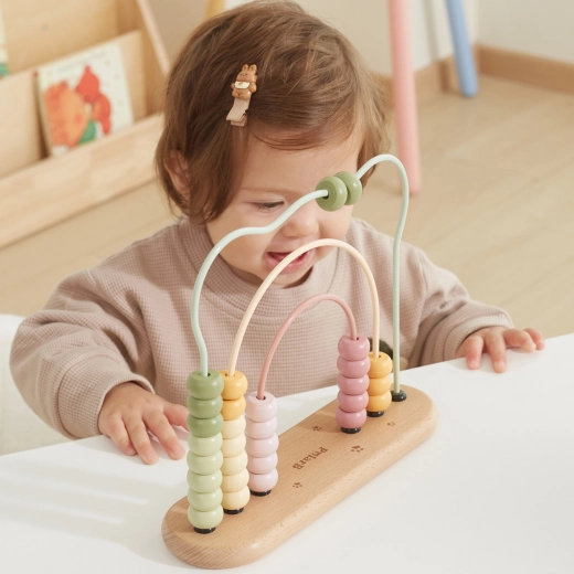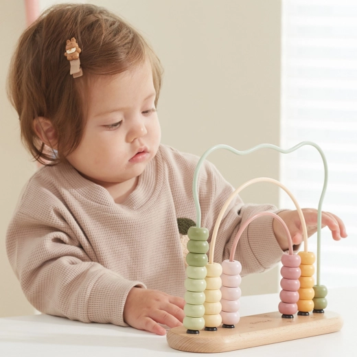Z drsenjem kroglic po zavitih žičnih poteh otroci vadijo štetje, primerjanje količin in ritmizacijo. Igrača je idealna od 12 mesecev dalje in pomaga graditi pravilne gibalne navade z ponavljajočimi, nadzorovanimi gibi prstov in zapestja.