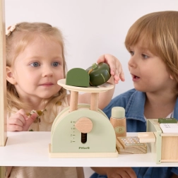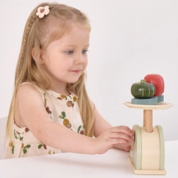 Spodbuja domišljijo in socialne veščine. Otroci lahko “ tehtajo” sadje in zelenjavo ter ustvarjajo lastne zgodbe in prizore.