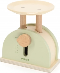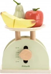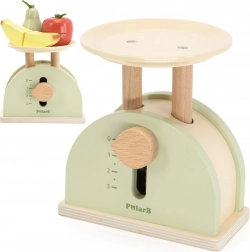 Lesena kuhinjska tehtnica POLARB je zasnovana za male kuharje in prodajalce. Združuje trpežen les z nežno barvno paleto in lahko berljivo številčnico, ki otrokom pomaga razumeti osnovna načela ravnotežja, primerjanja in merjenja. Odlično se poda v otroško kuhinjico ali trgovinico ter spodbuja igre vlog.