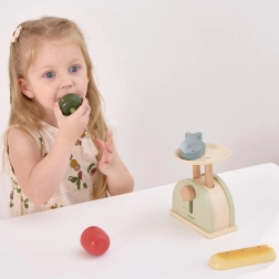 Igra s tehtnico razvija razmišljanje in logiko pri “tehtanju” različnih predmetov, vadi fino motoriko pri vrtenju gumba ter krepi komunikacijo in sodelovanje med igro s prijatelji ali starši. Kompaktne mere zagotavljajo, da se tehtnica zlahka prenaša in shranjuje.