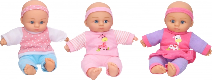 Prisrčen dojenček v oblačilu za otroke od 2 let. Lahko snamljivo oblačilo, mehko telo, velikost 24 cm.