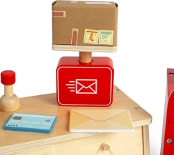 Doživite vse, kar se dogaja na pošti s tem fascinantnim kompletom za otroke od 3 let. Komplet vsebuje poštni nabiralnik, blagajno, tehtnico, vrečo za pakete, pakete, pisma in še veliko drugega, kar mali poštarji potrebujejo za svoje delo. Vsak kos je izdelan iz trajnostnega FSC® certificiranega lesa in premazan z nestrupenimi barvami.