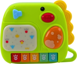 Interaktivni pianinček dinozaver je odlična izobraževalna igrača, ki otroke na igriv način seznanja s prvimi toni in melodijami. Barvne tipke predvajajo tone lestvice in motivirajo otroke k odkrivanju glasbe, medtem ko spremljevalne melodije in zvočni učinki ohranjajo njihovo pozornost in zabavo.