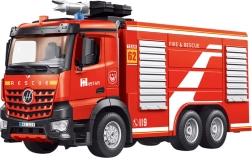 Reševalno gasilsko vozilo na daljinsko upravljanje tipa vodna cisterna je odlična igrača za otroke, ki sanjajo, da bi postali junaki. Vozilo je zasnovano z veliko pozornosti do podrobnosti in zvesto prikazuje prava gasilska vozila. Največja atrakcija tega modela je funkcija razprševanja vode, ki omogoča realistično simulacijo gašenja! Zahvaljujoč posebnemu rezervoarju ga lahko napolnite z vodo in aktivirate učinek vodne meglice, ki posnema pravi vodni curek.