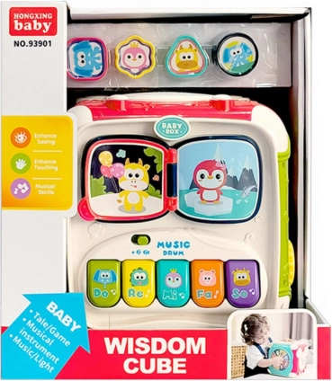 Interaktivna kocka je opremljena z interaktivnimi zvočnimi gumbi, barvnim klavirjem in svetlobnimi elementi, ki spodbujajo otrokove čute in razvijajo domišljijo. Sklop kock pomaga pri učenju logičnega razmišljanja in urjenju natančnosti gibov. Igra prepoznavanja oblik in pritiskanje gumbov razvijata kognitivne sposobnosti in spretnost, hkrati pa zagotavljata veliko zabave.