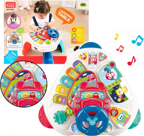 Interaktivna izobraževalna mizica otrokom omogoča razvijanje ročnih spretnosti, kognitivnih sposobnosti in glasbenega posluha. Vsebuje klaviaturo z barvnimi gumbi, ki odpira svet prvih melodij in zvokov.