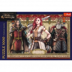 Zabavna sestavljanka Gospodar prstanov: Vojna Rohirov s 1000 koščki, ki prikazuje like iz animeja, navdihnjenega po delu J. R. R. Tolkiena. Po sestavljanju nastane privlačna slika dimenzij 683×480 mm.