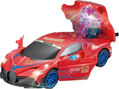 Ta otroški športni avto navduši z izrazitim dizajnom in pametnimi funkcijami. Po odprtju zadnjega prtljažnika se prižge efektna LED krogla z večbarvno osvetlitvijo, ki vožnji doda dinamiko. Zahvaljujoč svetlobnim in zvočnim učinkom je igra še bolj realistična in privlačna.
