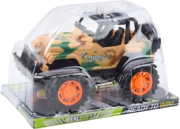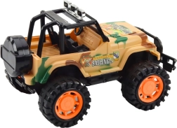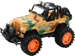 Otroški terenski avto v bež maskirnem slogu prinaša veliko akcije: ima povišano podvozje, velika kolesa z globokim profilom in vzdržljivo plastično konstrukcijo za vožnjo doma in na prostem. Dimenzije vozila 25 × 16,5 × 15,5 cm.
