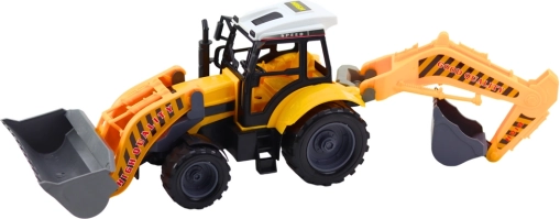 Ta zvesti model delovnega stroja združuje videz gradbenega in kmetijskega vozila. Trdna plastična izvedba in velika kolesa omogočajo gladko vožnjo po različnih podlagah, zato je primeren tako za otroško sobo kot za vrt. Zahvaljujoč dvižni sprednji žlici in premičnemu zadnjemu ročaju lahko otroci posnemajo resnična dela na polju in gradbišču.