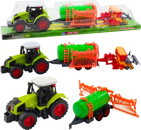 Komplet je zapakiran v originalni prozorni škatli – idealno kot darilo za male ljubitelje kmetijskih strojev.