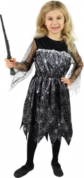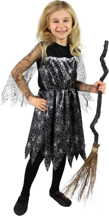 Ta čarovniški kostum je idealna izbira za deklice stare 4–6 let (višina 105–116 cm). Kostum sestavlja črna obleka s srebrno pajčevino, ki pričara skrivnosten in čaroben videz. Zasnovan je tako, da je udoben za nošenje in omogoča svobodno gibanje.