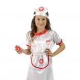Ljubek otroški kostum medicinske sestre za male zdravstvene junakinje. Idealen za pust, maškerade in tematska praznovanja. Set vsebuje obleko in čepico. Velikost S za otroke 4–6 let (pribl. 105–116 cm). Stetoskop ni priložen.