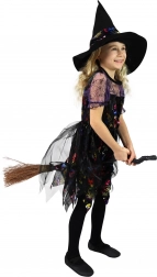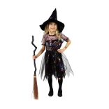 Ta otroški čarovniški kostum je idealen za male gospodične, ki si želijo čarobne noči čarovnic ali karnevala. Kostum je izdelan iz kakovostnega tekstilnega materiala in ponuja ne le odličen videz, temveč tudi udobje pri nošenju. Po velikosti je primeren za otroke, stare 4 do 6 let, z višino 105–116 cm.