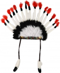 Dopolnite svoj kostum z izrazitim indijanskim naglavnim trakom s peresi v kontrastnih barvah. Trak je zasnovan za udobno celodnevno nošenje in se zaradi elastičnega traku zanesljivo prilagodi večini velikosti.